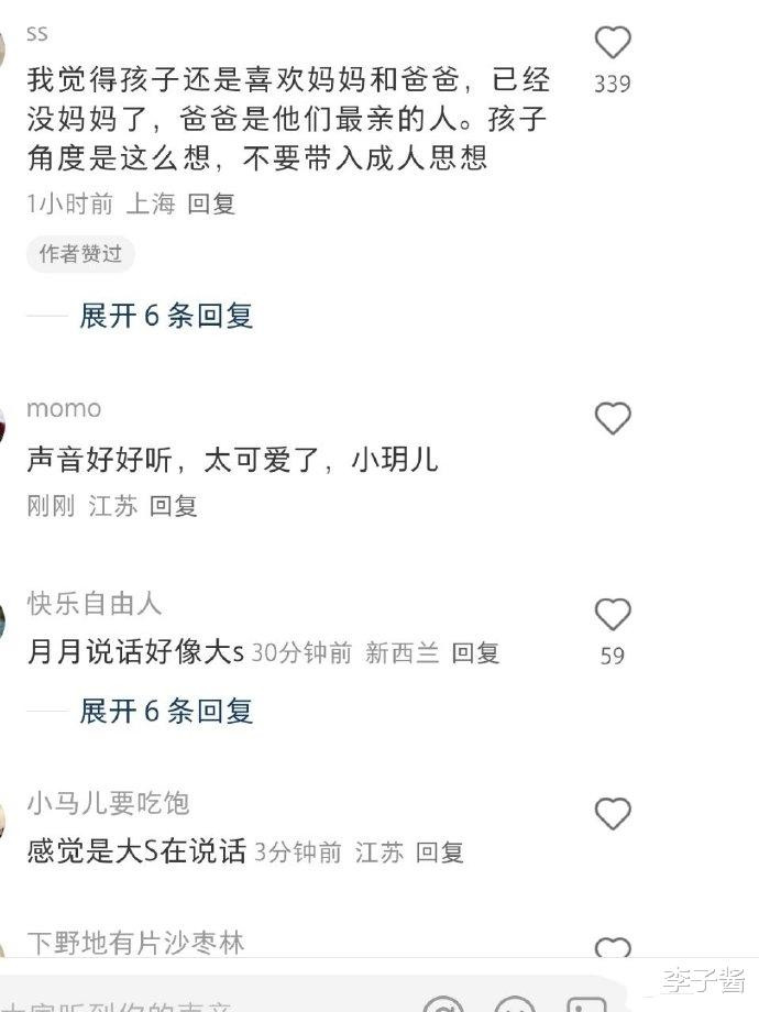 也有不少网友纷纷留言称:我觉得孩子还是喜欢妈妈和爸爸,现在妈妈没有了,爸爸是他们最亲的人,生前大s就非常喜欢他们的孩子,以后希望汪小菲好好陪伴这两个可爱的孩子吧!从网友的留言谈论中满满都是对大s这两个孩子的可怜和疼爱,当然了从汪小菲的女儿的聊天中也能感觉汪小菲绝对是一位好爸爸。